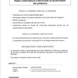 Dans l’attente de la création d’une plateforme dédiée, les dossiers complets sont à adresser à : courrier@collectivitedemartinique.mq copie à apprentissage@collectivitedemartinique.mq